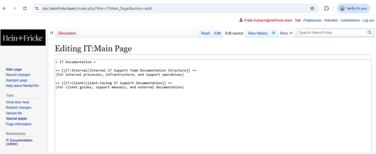 This guide applies to all Hein+Fricke employees, contractors, and interns who have been granted access to the MediaWiki platform.